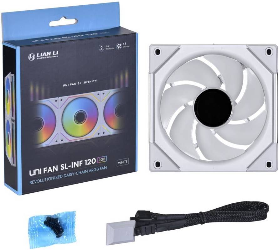 مروحة Lian Li SL-Infinity 120 RGB أحادية الحزمة UNI، مستوى ضوضاء منخفض عند سرعة دوران عالية، اتصال سريع، 40 مصباح LED، أبيض | G99.12SLIN1W.00