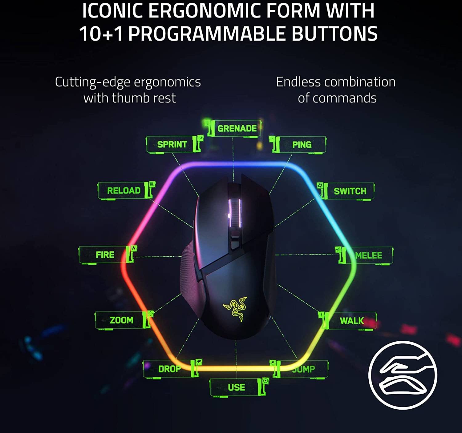 - شكل مريح مميز مع 10+1 زر قابل للبرمجة: يفضله الملايين حول العالم، حيث يدعم الشكل المميز للفأرة قبضات مختلفة بشكل مثالي، بينما تسمح أزرارها العديدة سهلة الوصول بمزيج لا نهاية له من الأوامر والماكرو