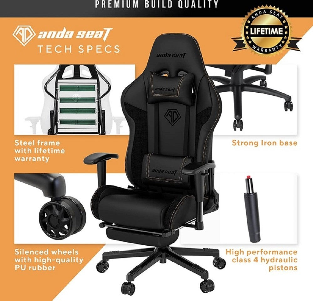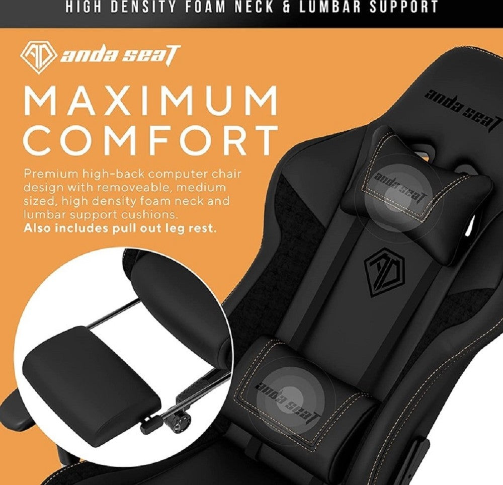 AndaSeat Jungle 2 Series Premium Gaming Chair, Sturdy Retractable Footrest, Ergonomic Design, High-Quality PVC Leather, Lifetime Framework, Black | AD5T-03-BR-PV