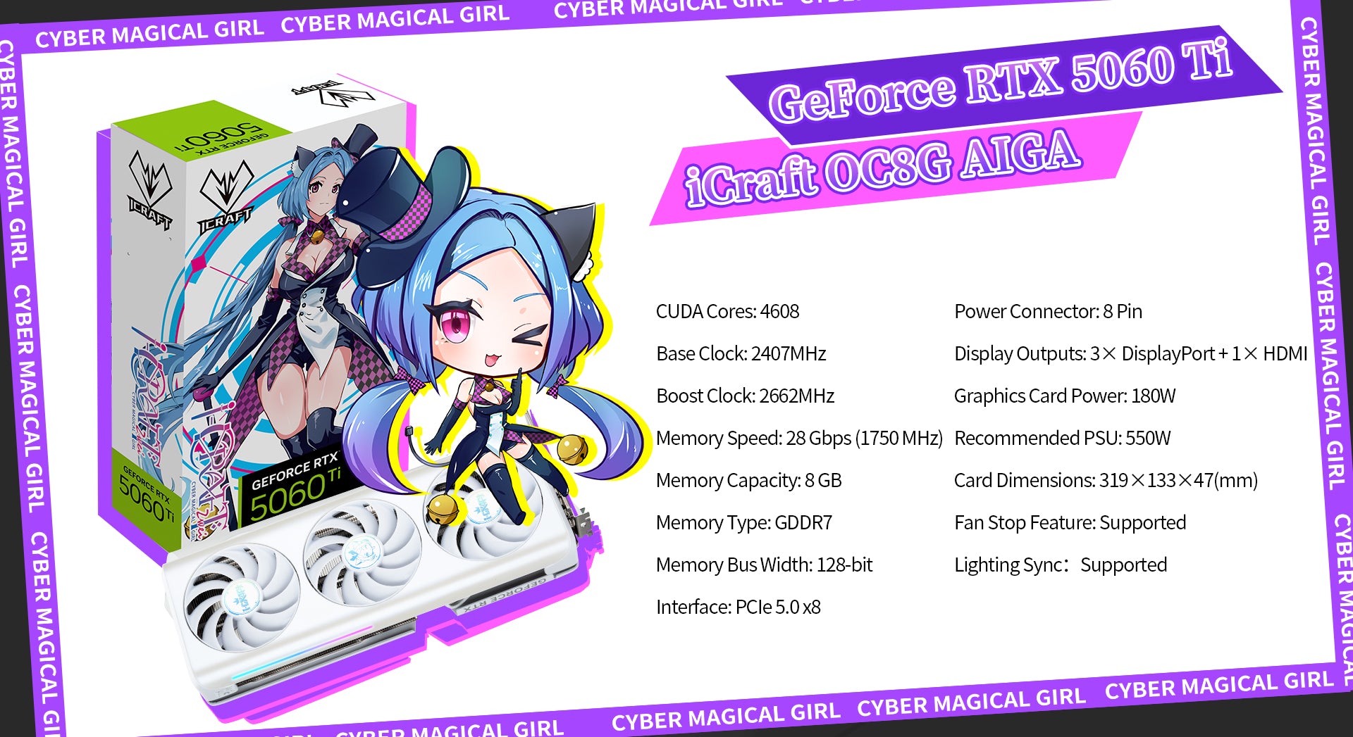 MAXSUN GeForce RTX 5060 Ti iCraft 8GB OC GDDR7 AIGA Gaming Graphics Card, White | MS-RTX5060Ti iCraft OC8G AIGA