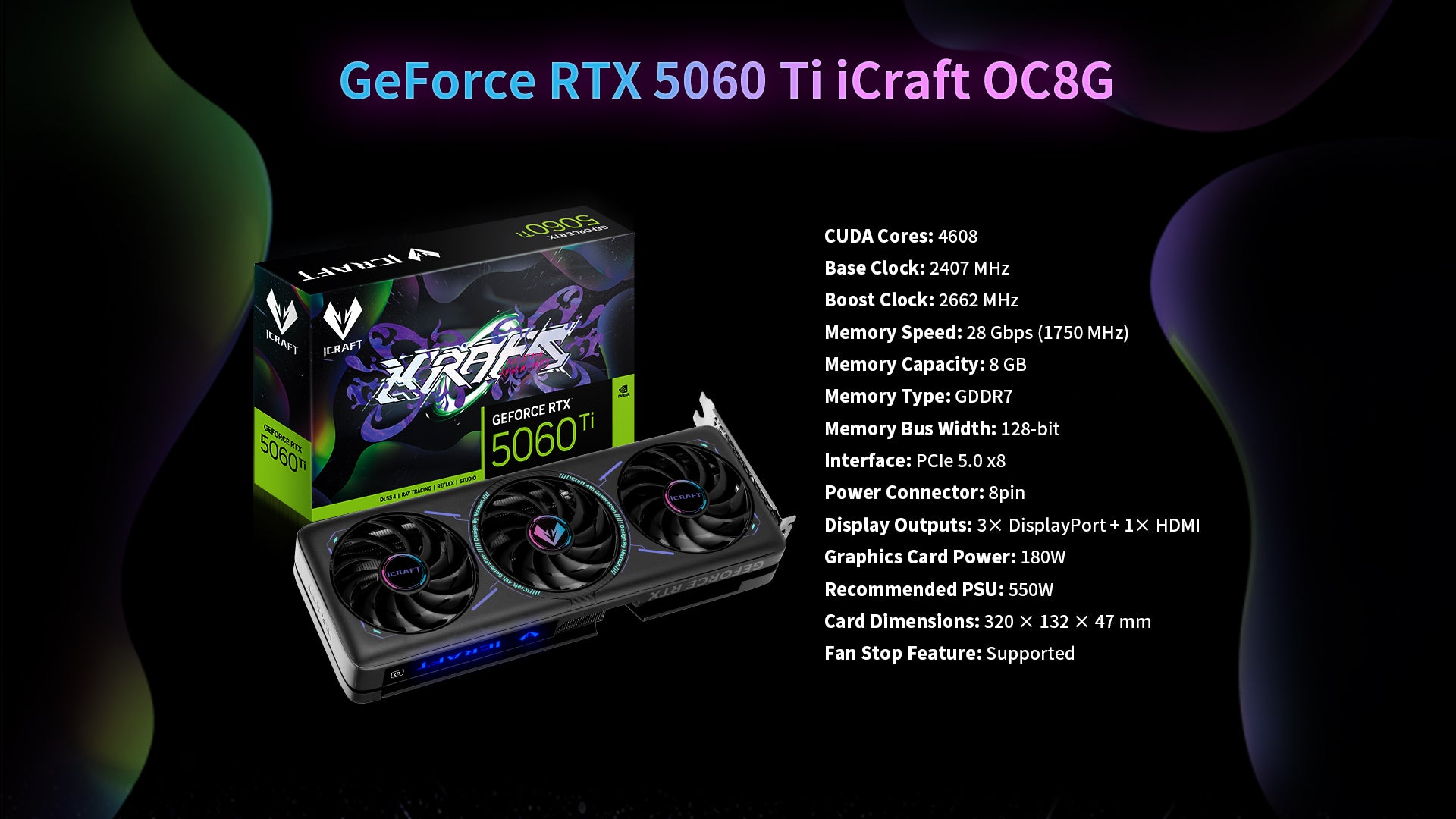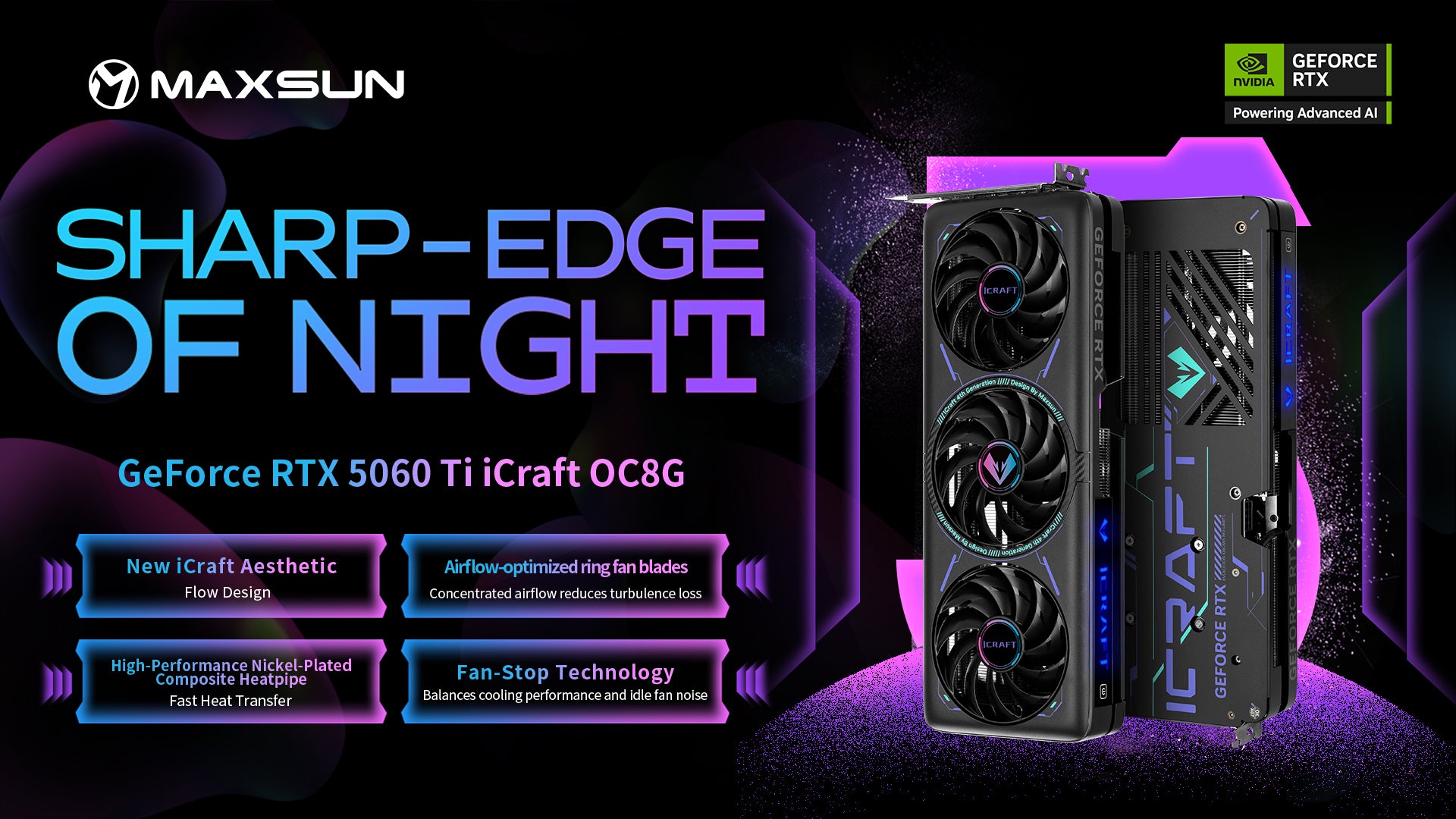 MAXSUN iCraft GeForce RTX 5060 Ti 8GB OC GDDR7 Triple Fan Gaming Graphics Card | MS-RTX5060Ti iCraft OC8G