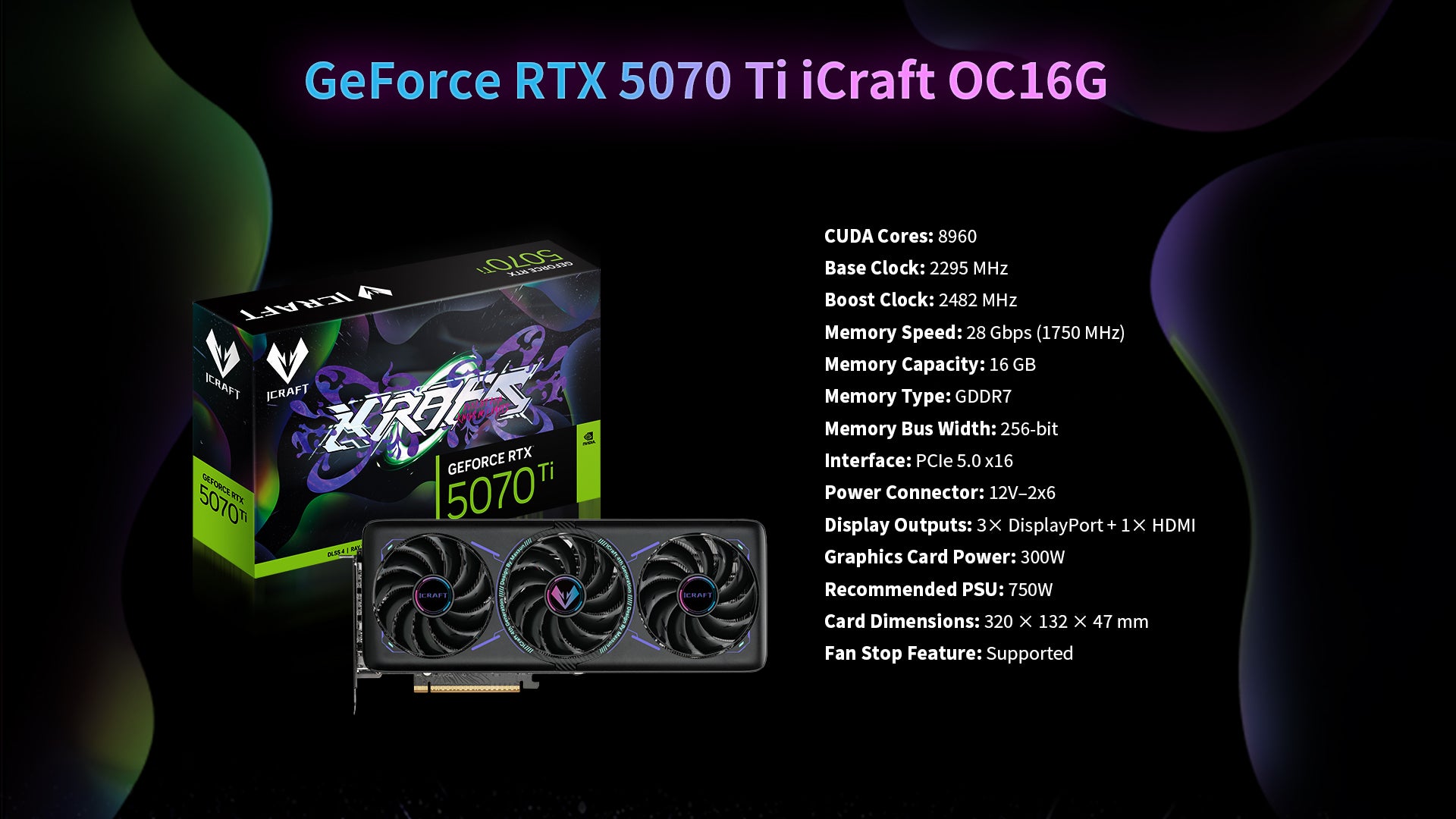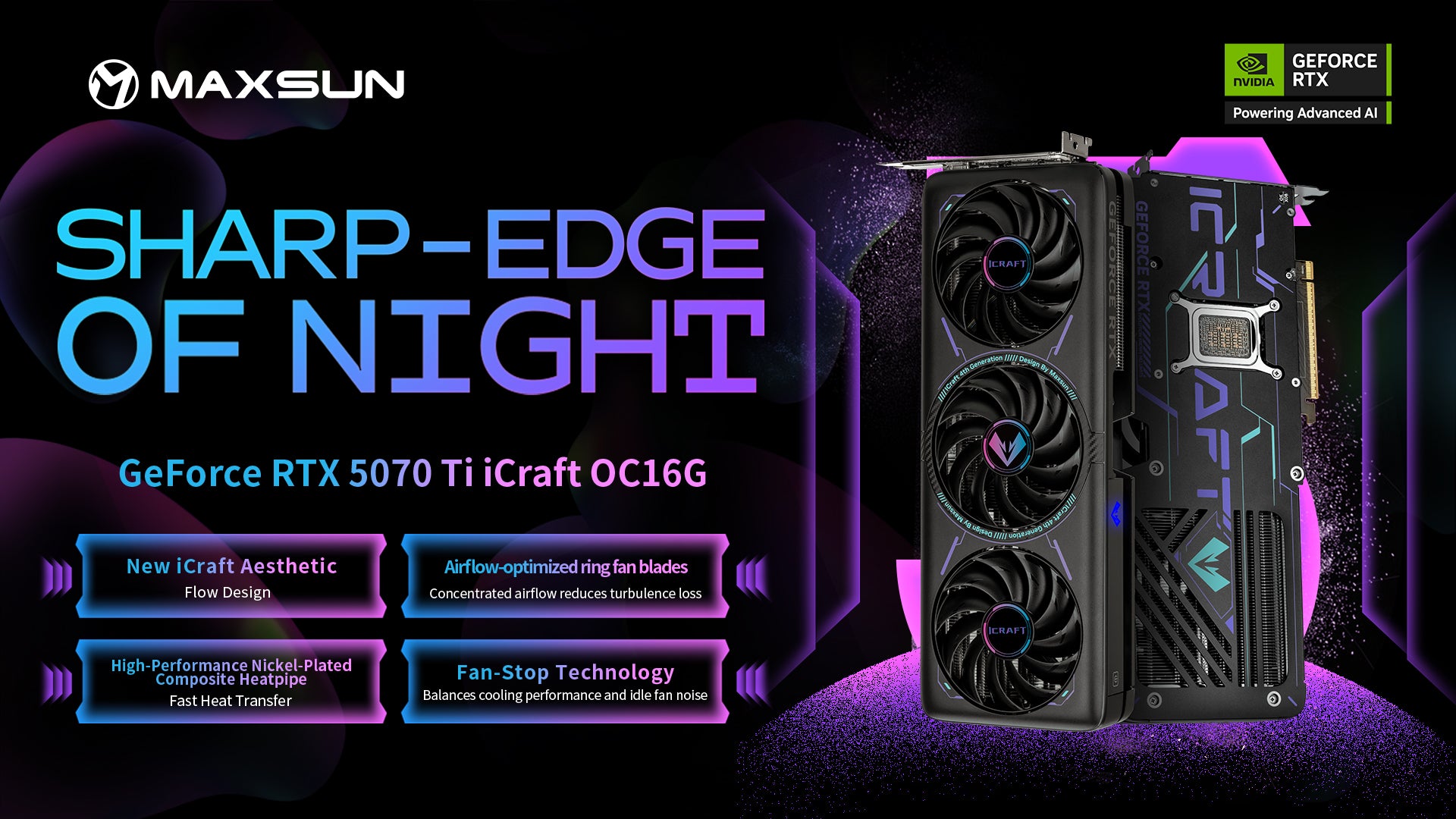 MAXSUN iCraft GeForce RTX 5070 Ti 16GB OC Triple Fan Gaming Graphics Card | MS-RTX5070Ti iCraft OC16G