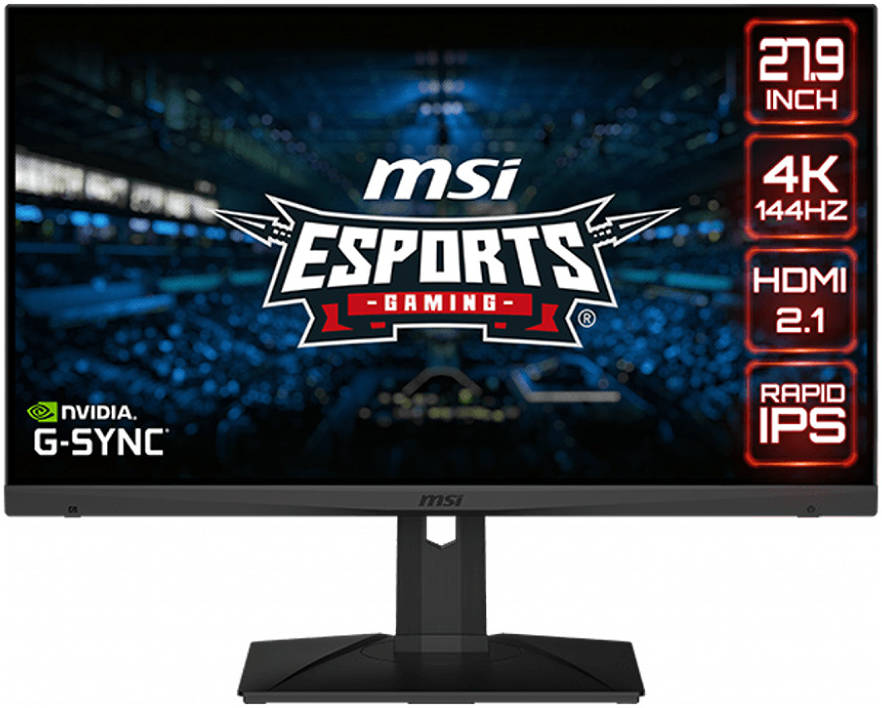 MSI Optix MAG281URF 27.9" 4K UHD Rapid IPS Flat Gaming Monitor, 144Hz Refresh Rate, 1ms Response Time, NVIDIA G-Sync, HDR400, Gaming OSD App , 1x DP (1.4a) 2x HDMI (2.1) 1x Type Black | 9S6-3CC8GQ-018