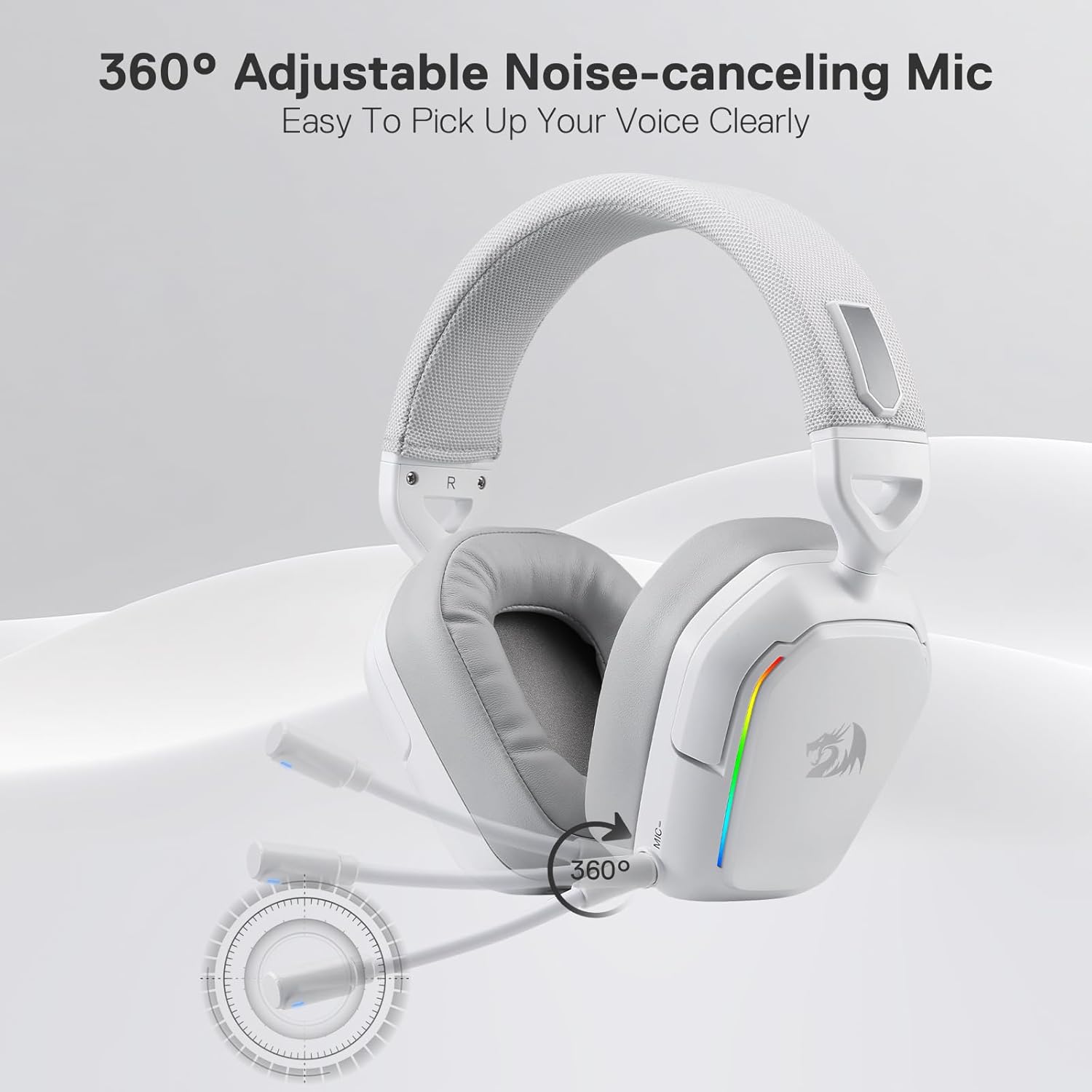 Redragon Mira White 3-Mode Wireless RGB Gaming Headset, 7.1 Surround Sound, 40 mm Driver, Leather Foam Ear Pads, Noise Cancelling Microphone, Over-Ear Headphones for Mobile Phone, PC/PS5/XBOX/NS, White| H868W