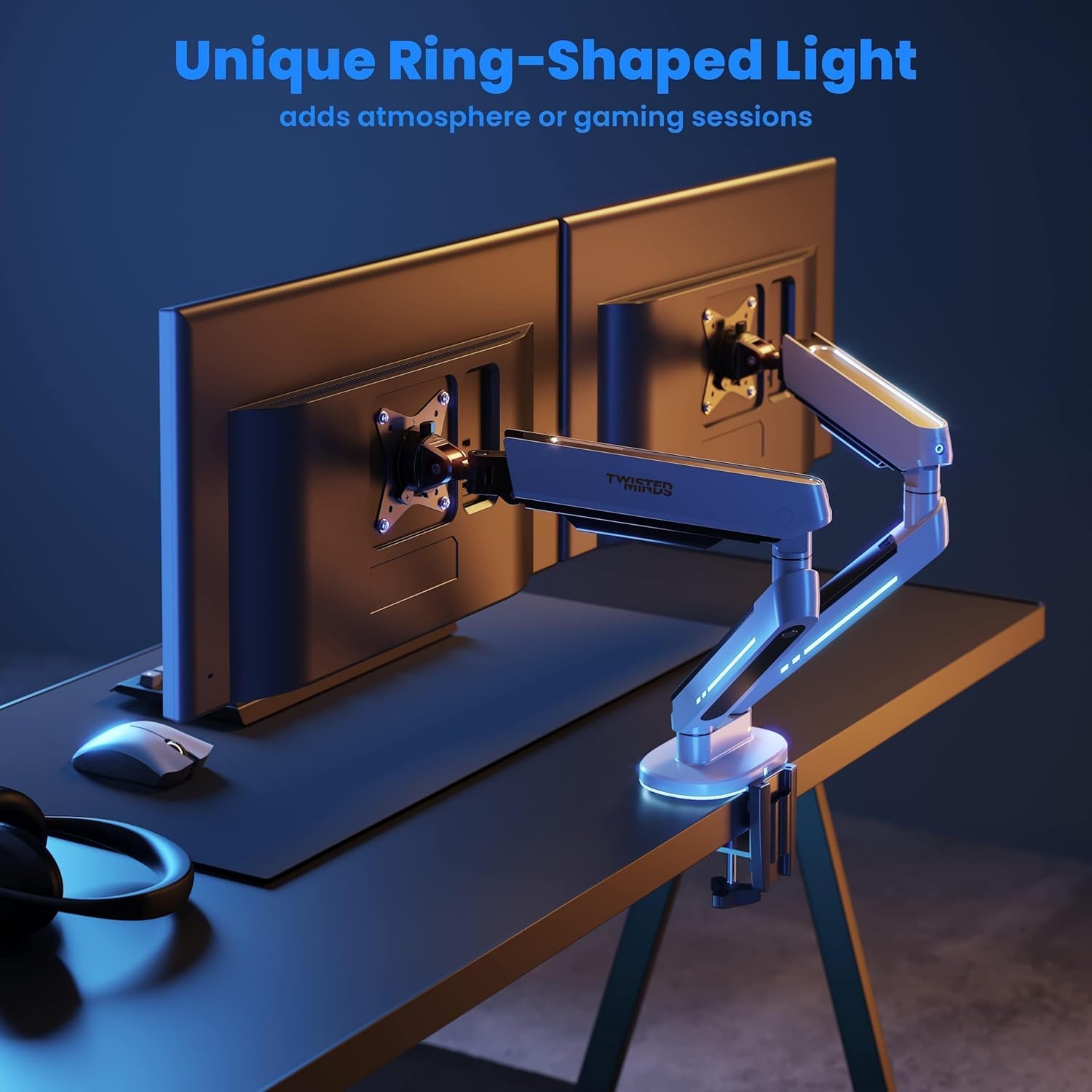 Twisted Minds Dual Monitor Mount with Built-in Ambient Relaxing RGB Lights - White ( TM-54-C012-W )