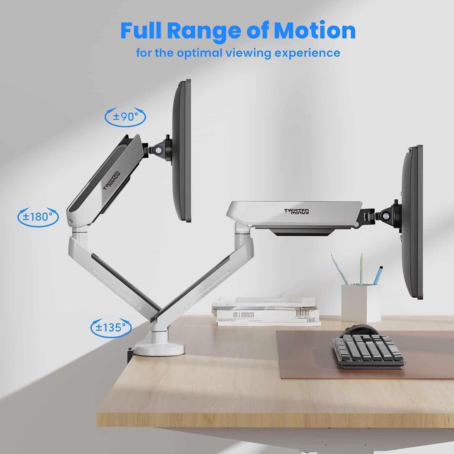 - Premium Quality Durable Gas Spring - This dual arm desk mount is built with quality aluminum and durable gas spring, plus adjustable tension of Gas Shock, making it a long-lasting investment for your gaming/working time.