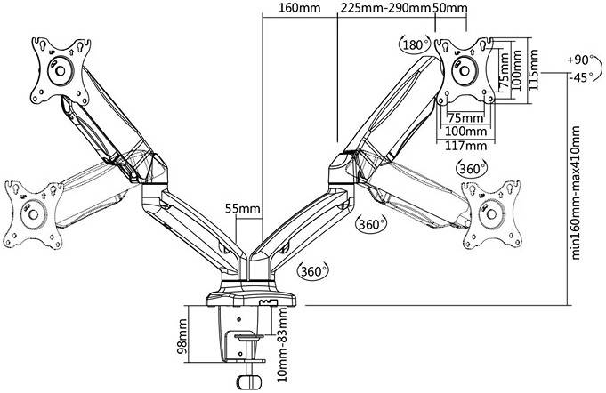 • Heavy-duty Dual monitor arm with spring-assisted mechanism